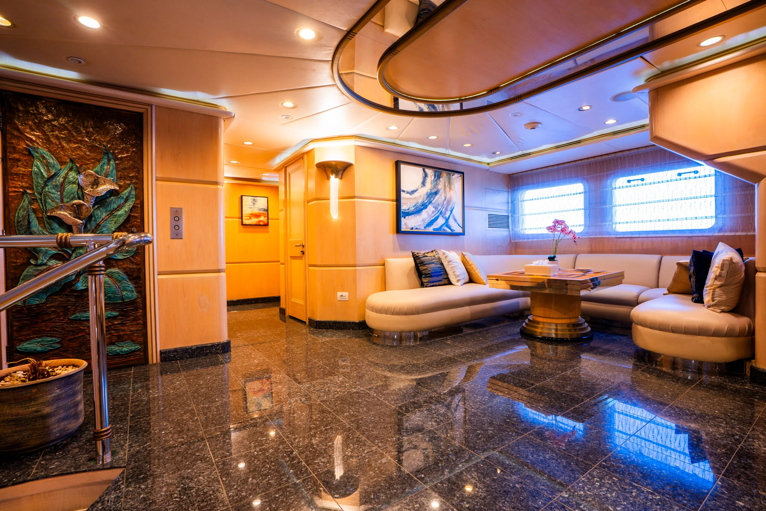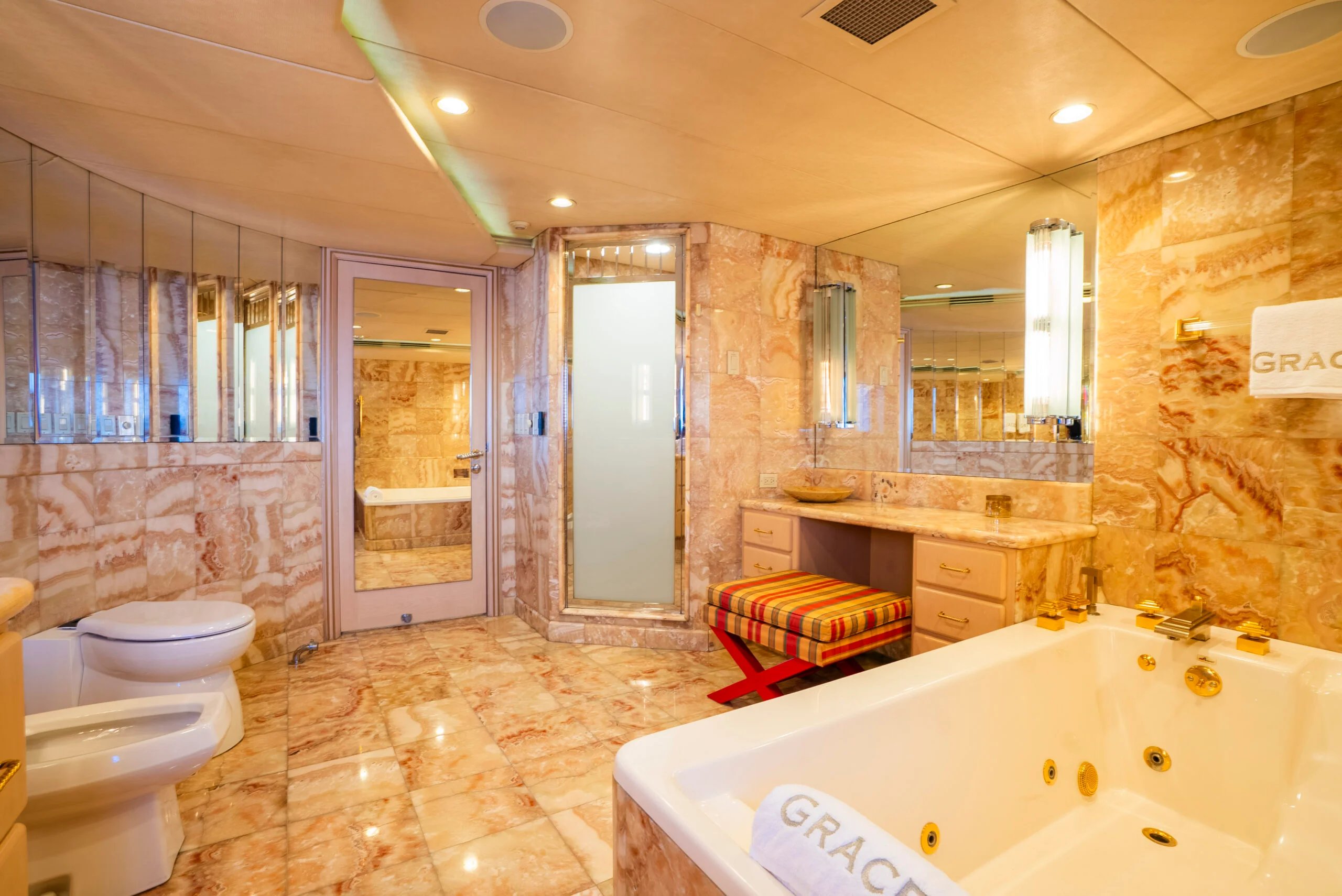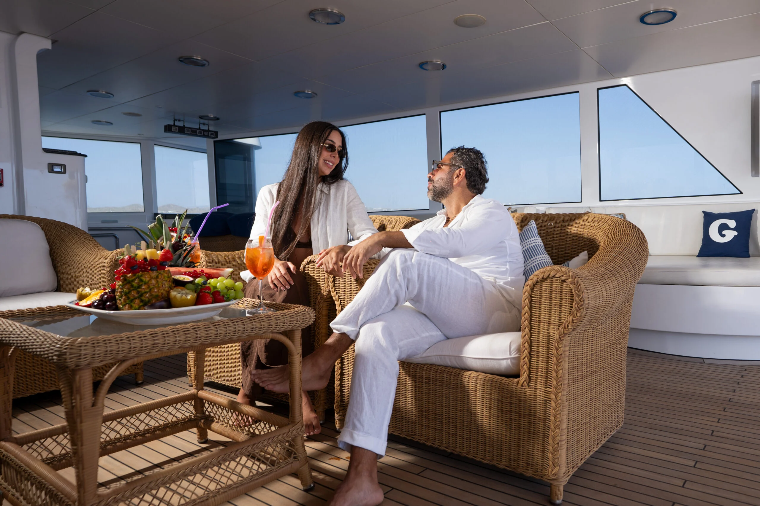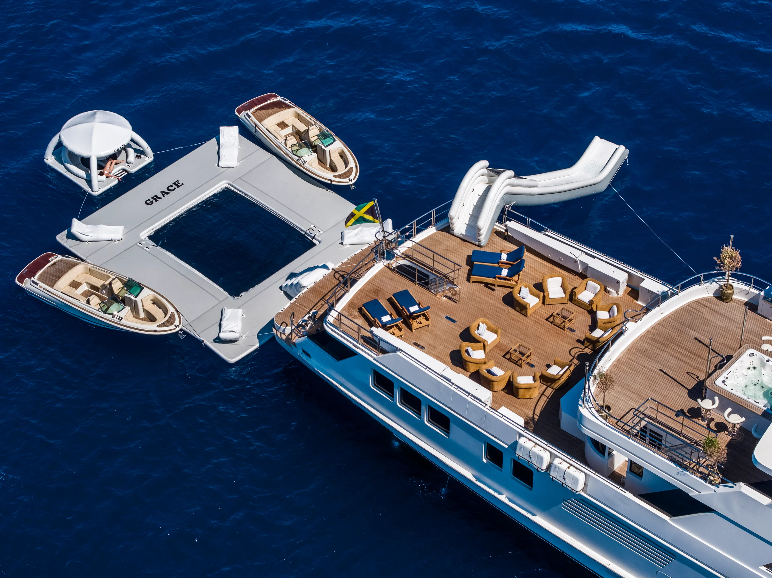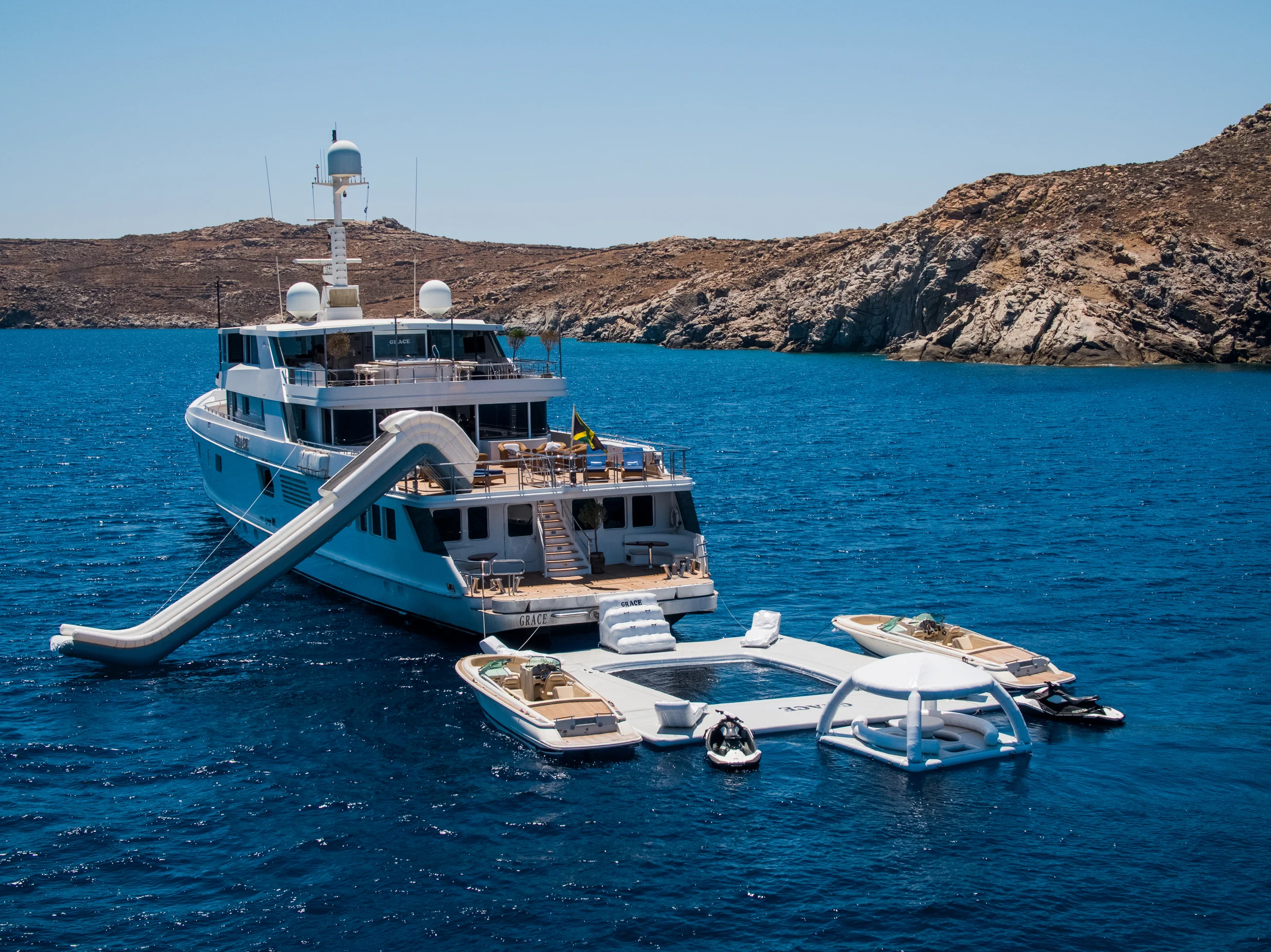 Boating is about the journey. Superyacht GRACE (ex. FAM) is an impressive and timeless 60.00m (196′ 10″) motor yacht available for charter in Dubai, originally built in 1991 by Australian Yacht Builders and upgraded with a refit in 2020. She presents guests with beautifully furnished and sociable deck spaces and a custom-designed interior. Up to twelve guests can be accommodated in six staterooms including a sumptuous master suite. Learn more about our crew and luxury services on our About Us page to plan your unforgettable yacht experience.