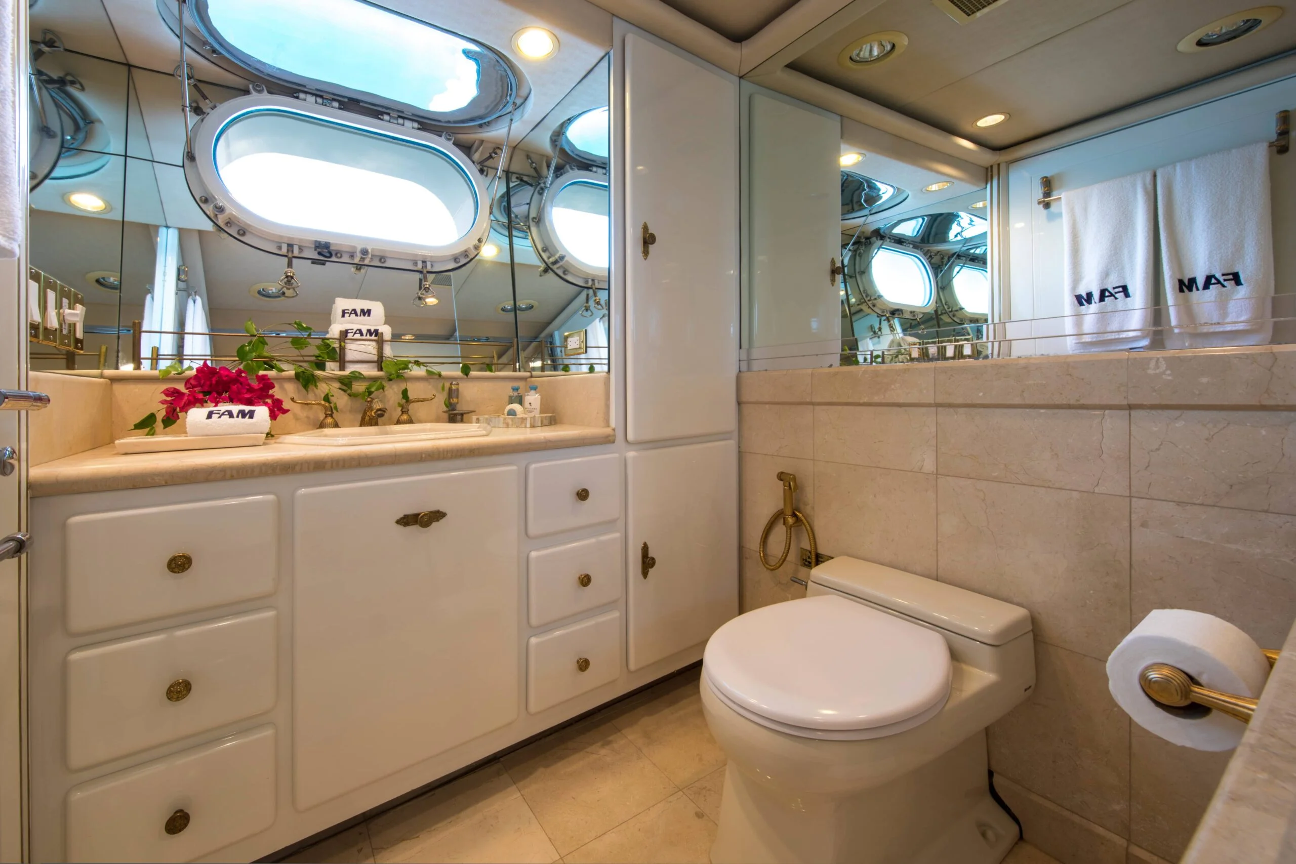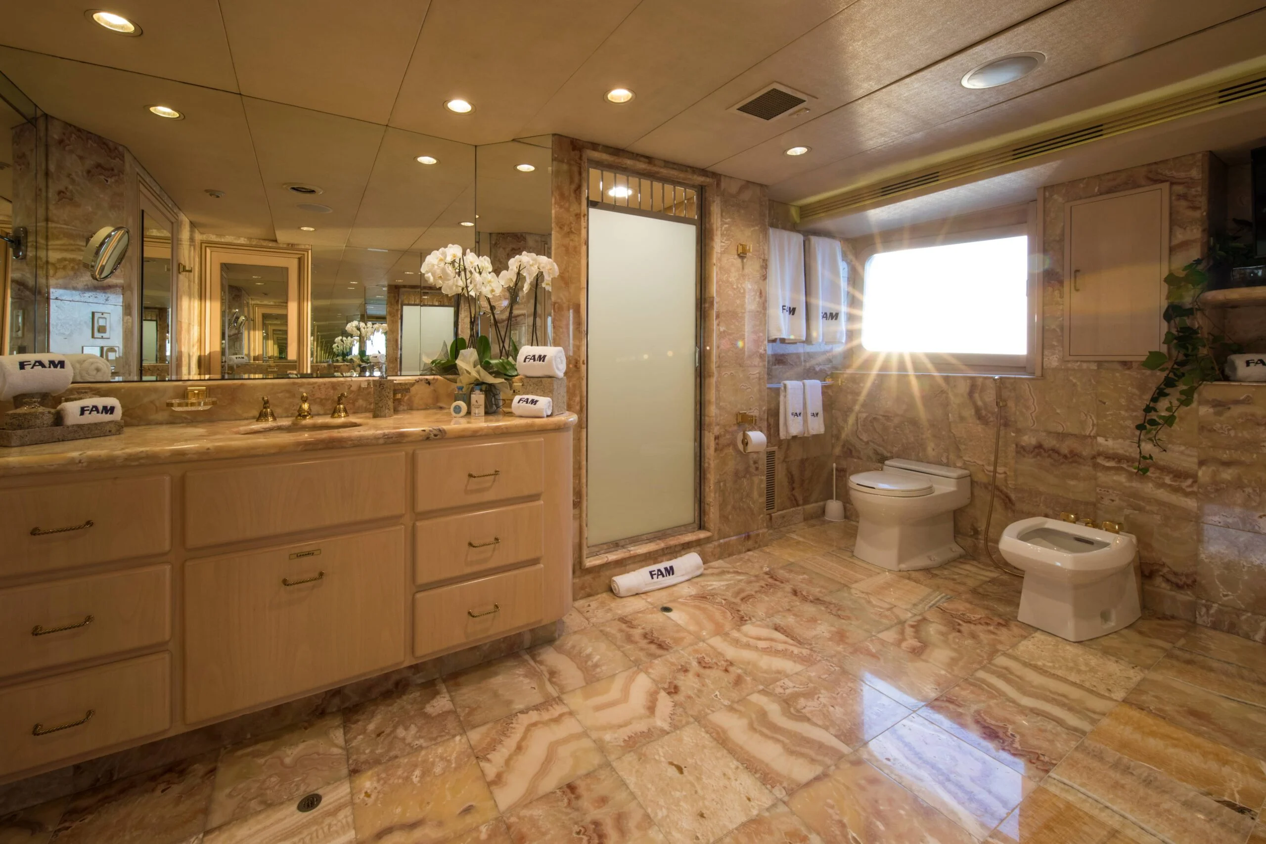 Well-appointed bathroom with sea view aboard Grace Yacht