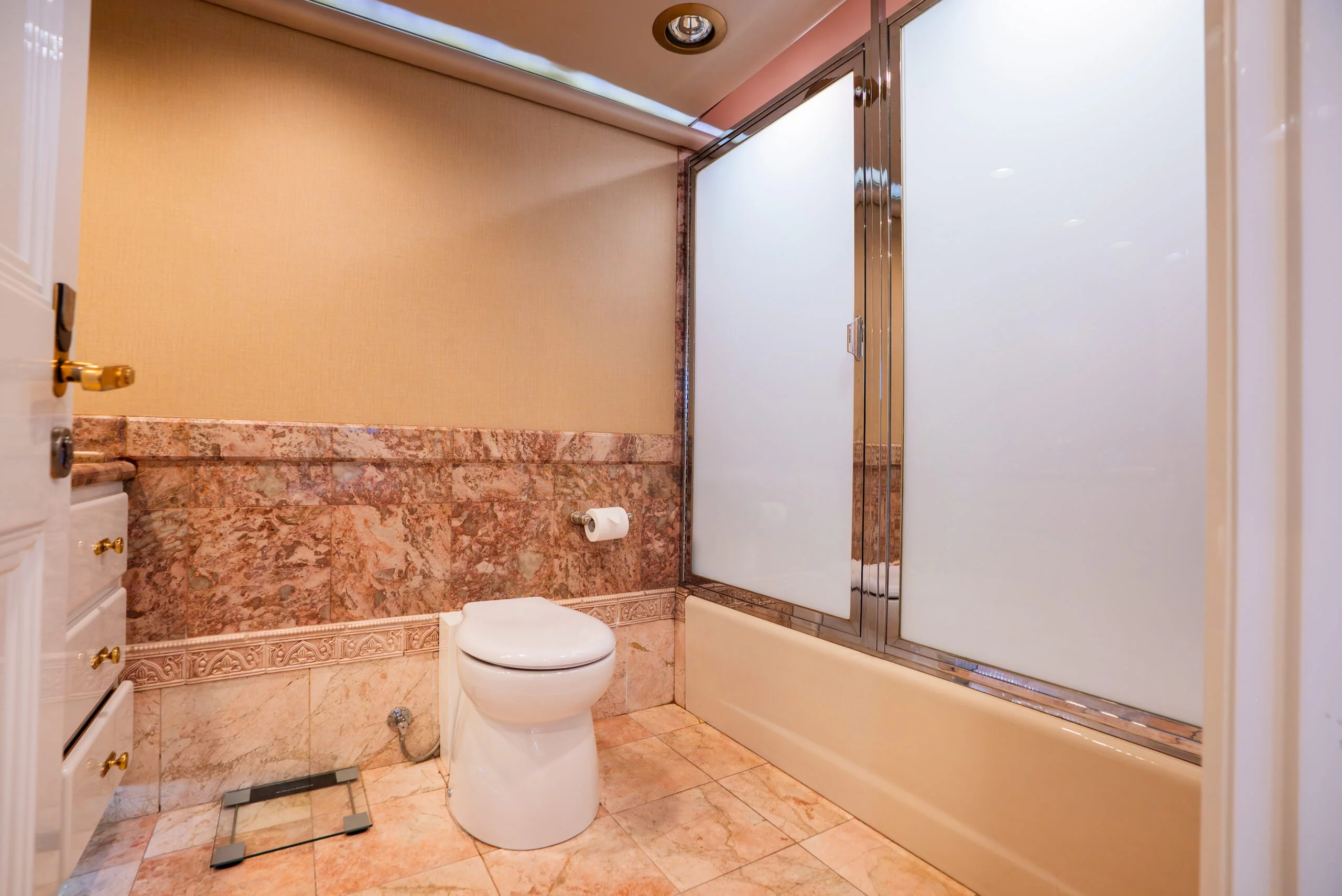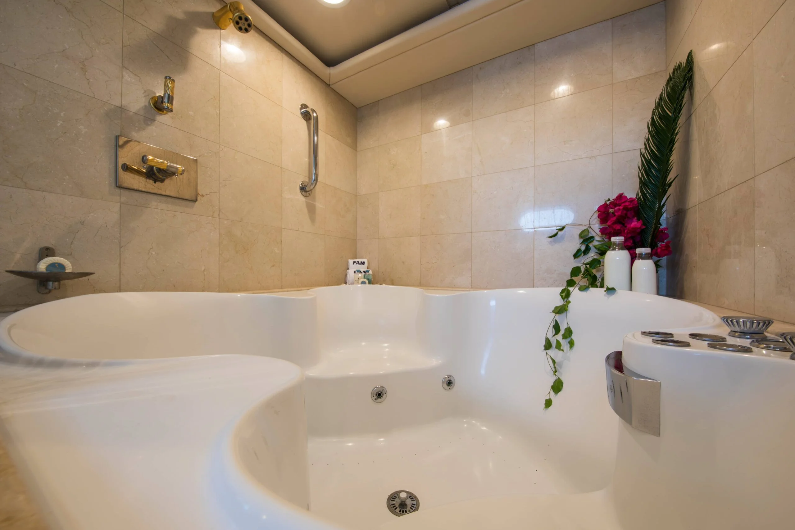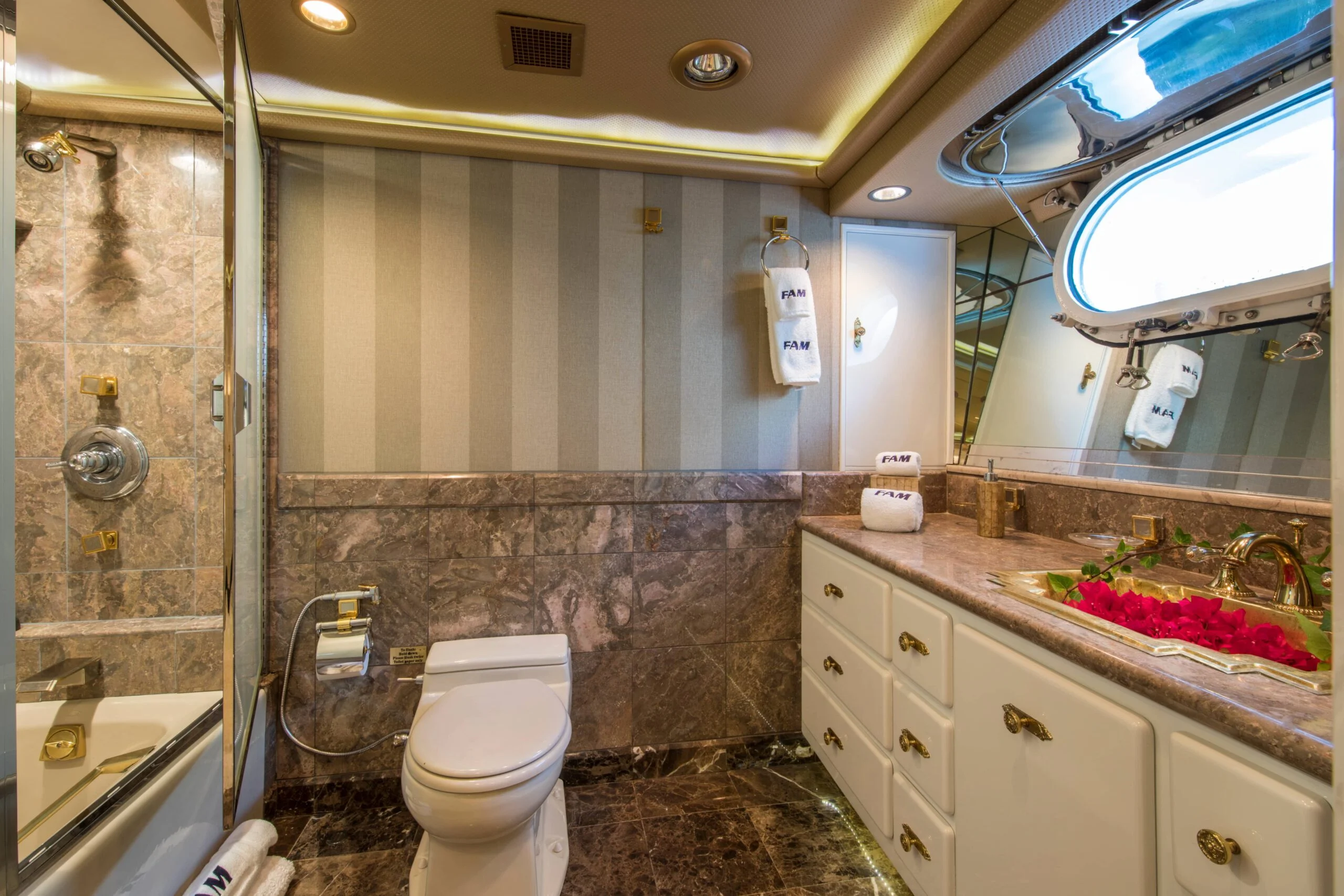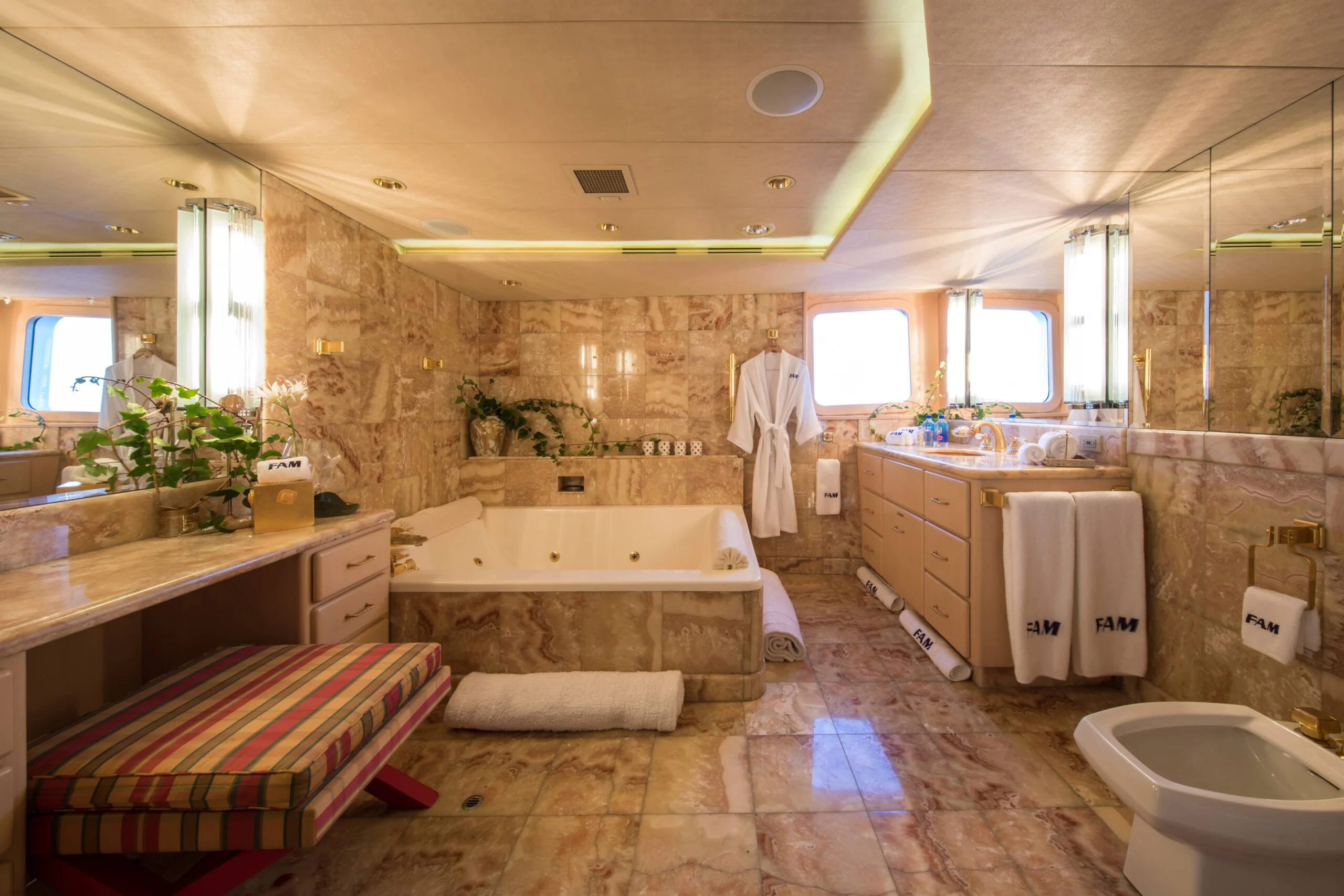Opulent bathroom aboard Grace Yacht featuring a stylish bathtub