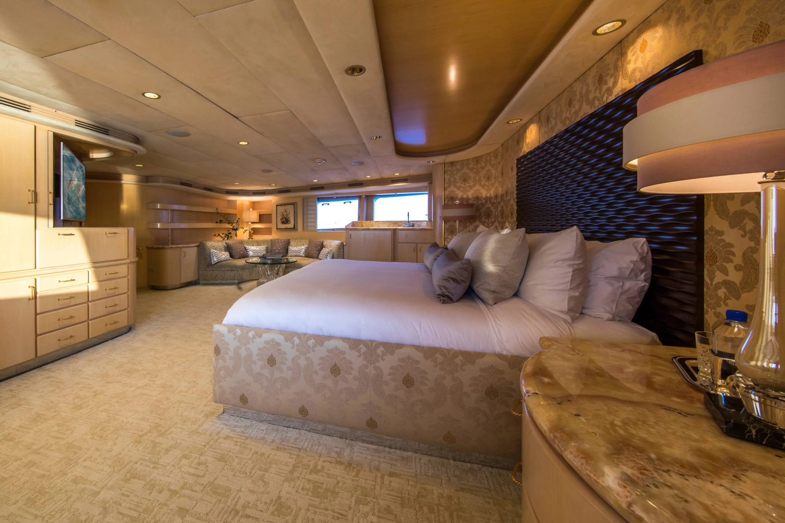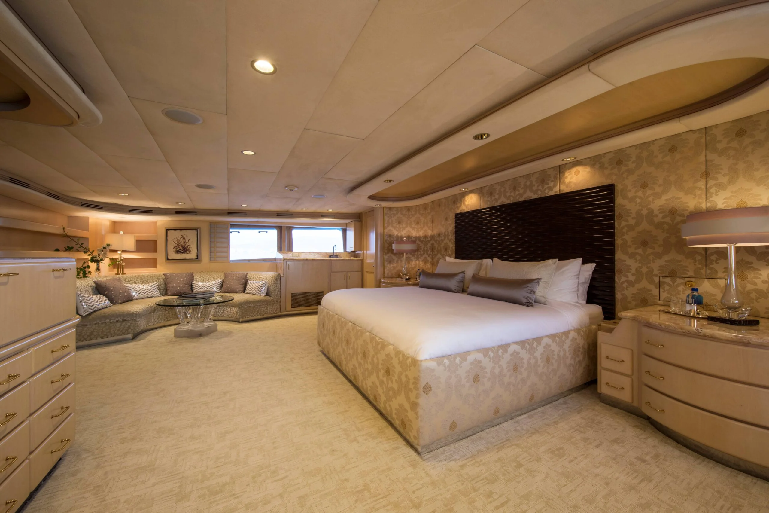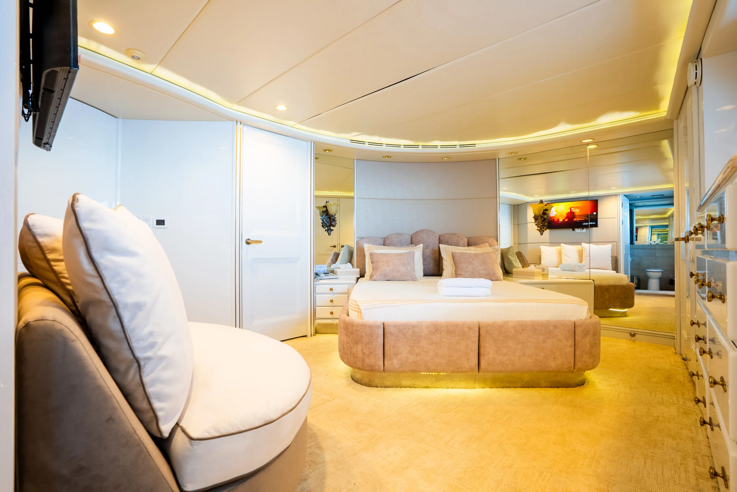 Elegant sofa seating in the luxurious yacht bedroom