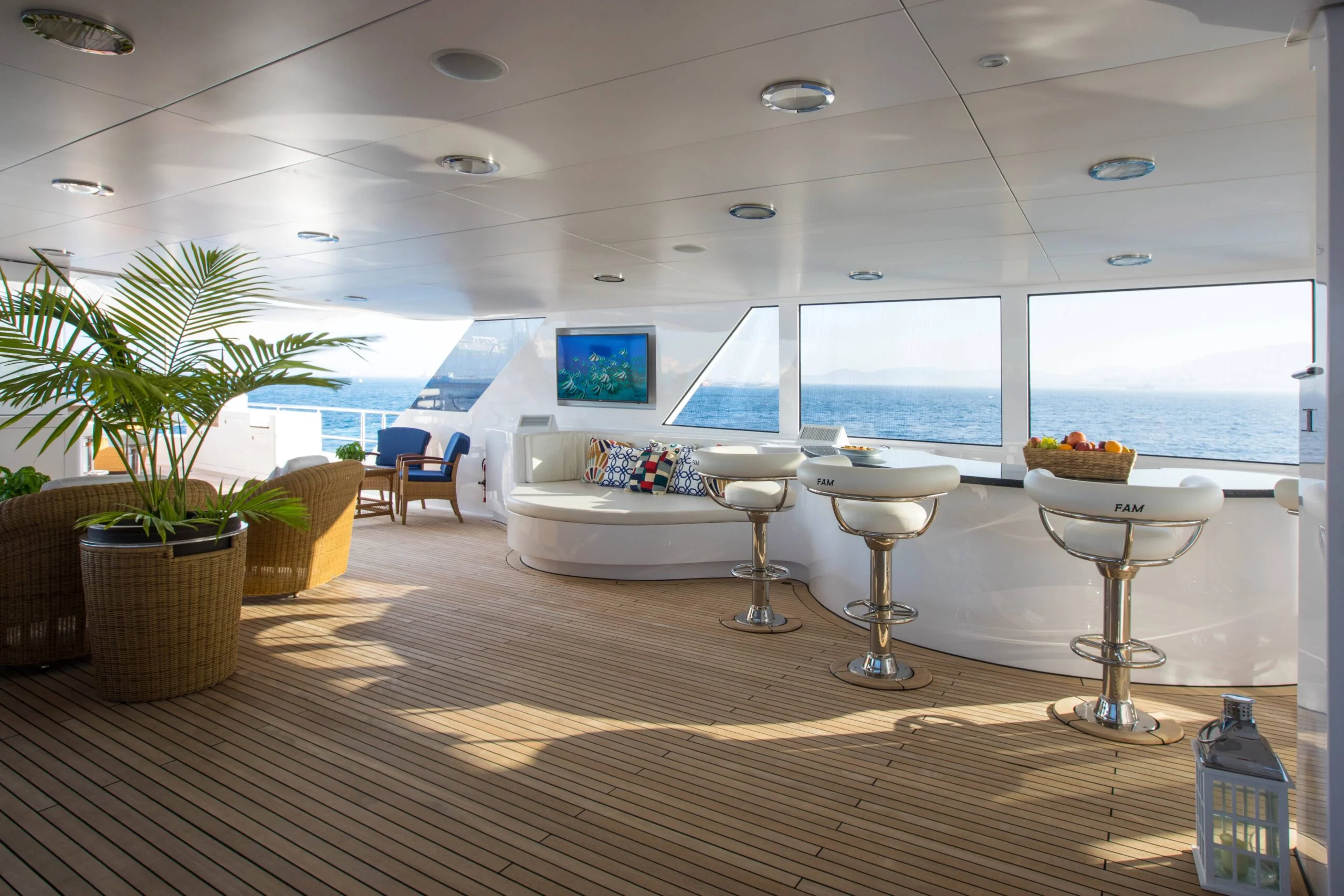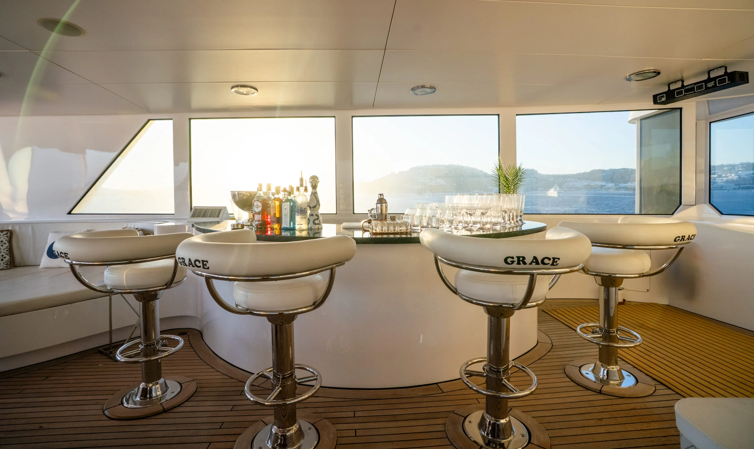Afternoon relaxation at the bar on Grace Yacht’s deck
