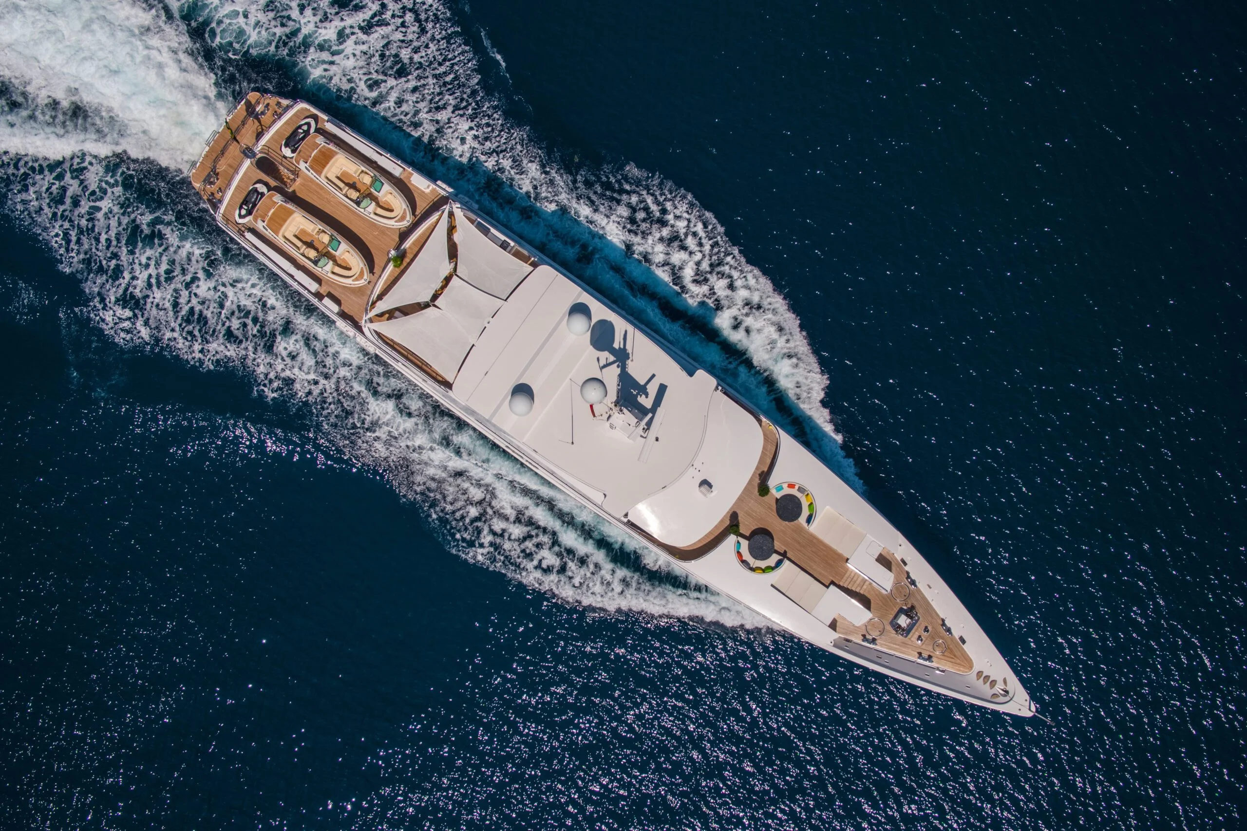Grace Yacht captured from above while cruising on the sea