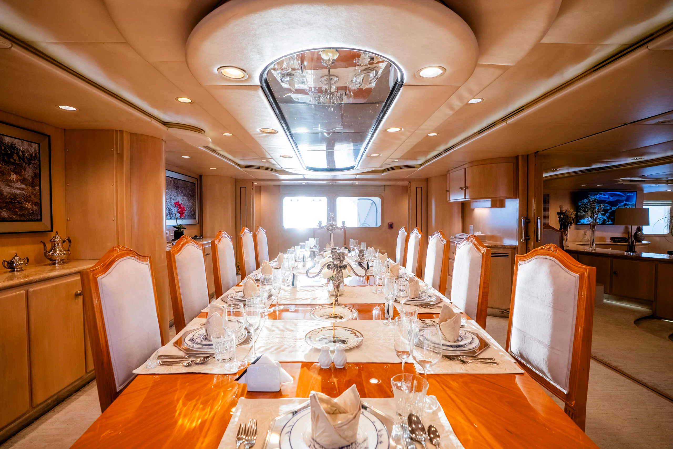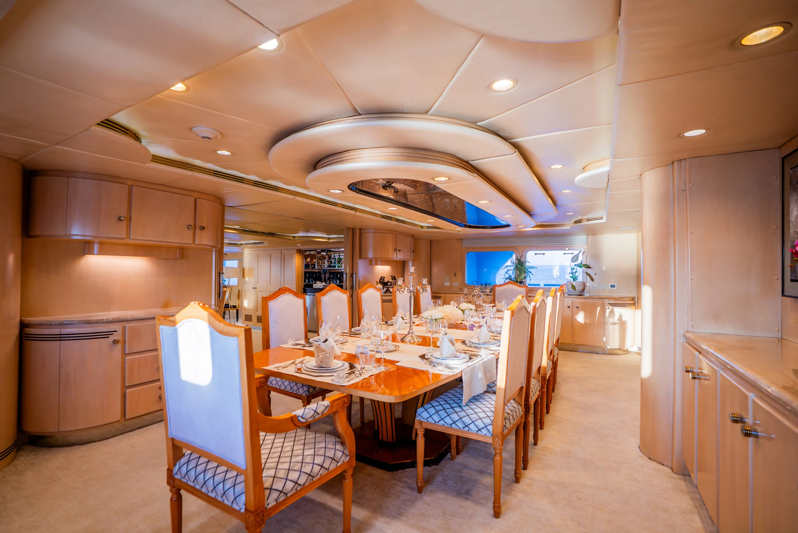 Enjoy exquisite meals in the spacious dining area on Grace Yacht