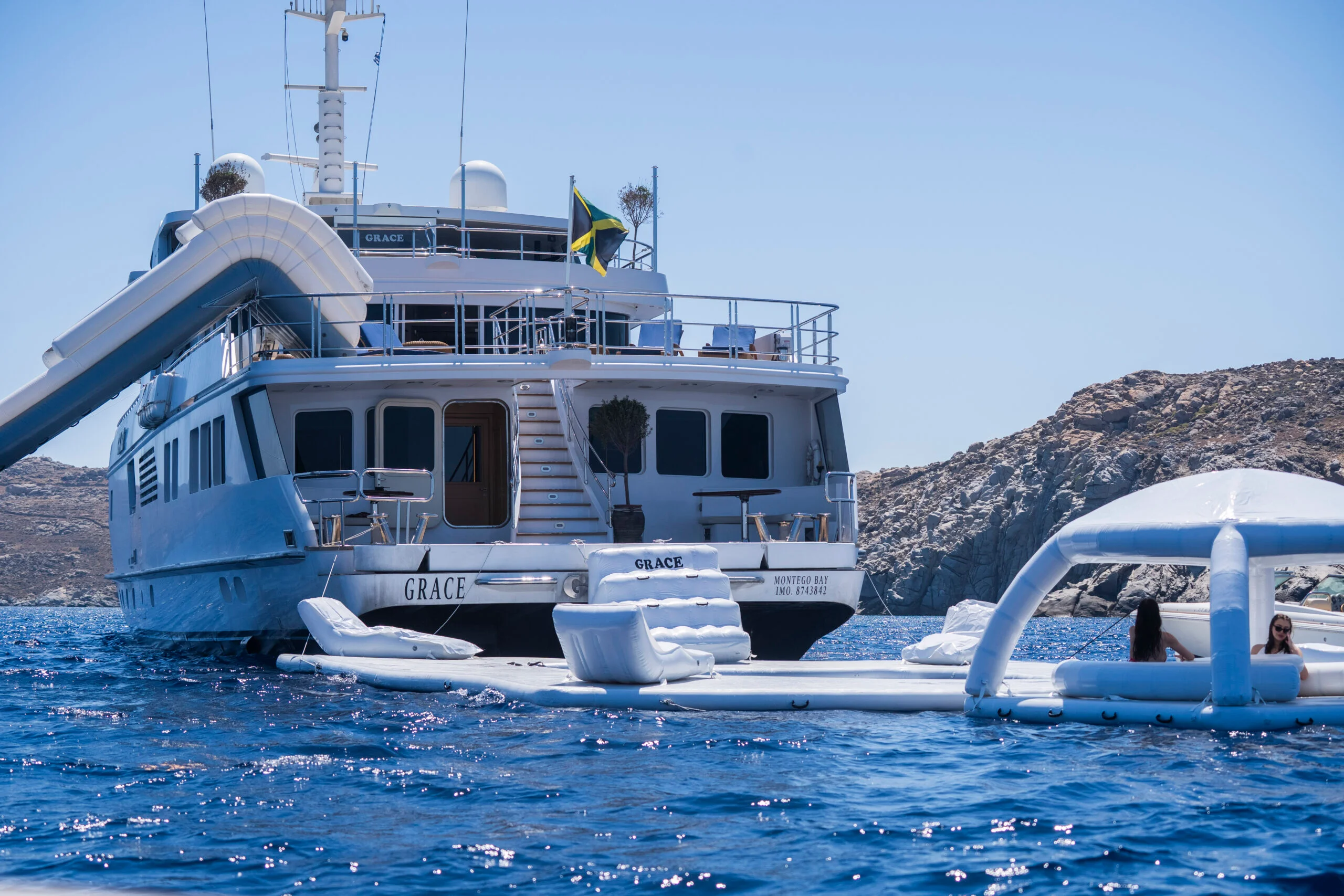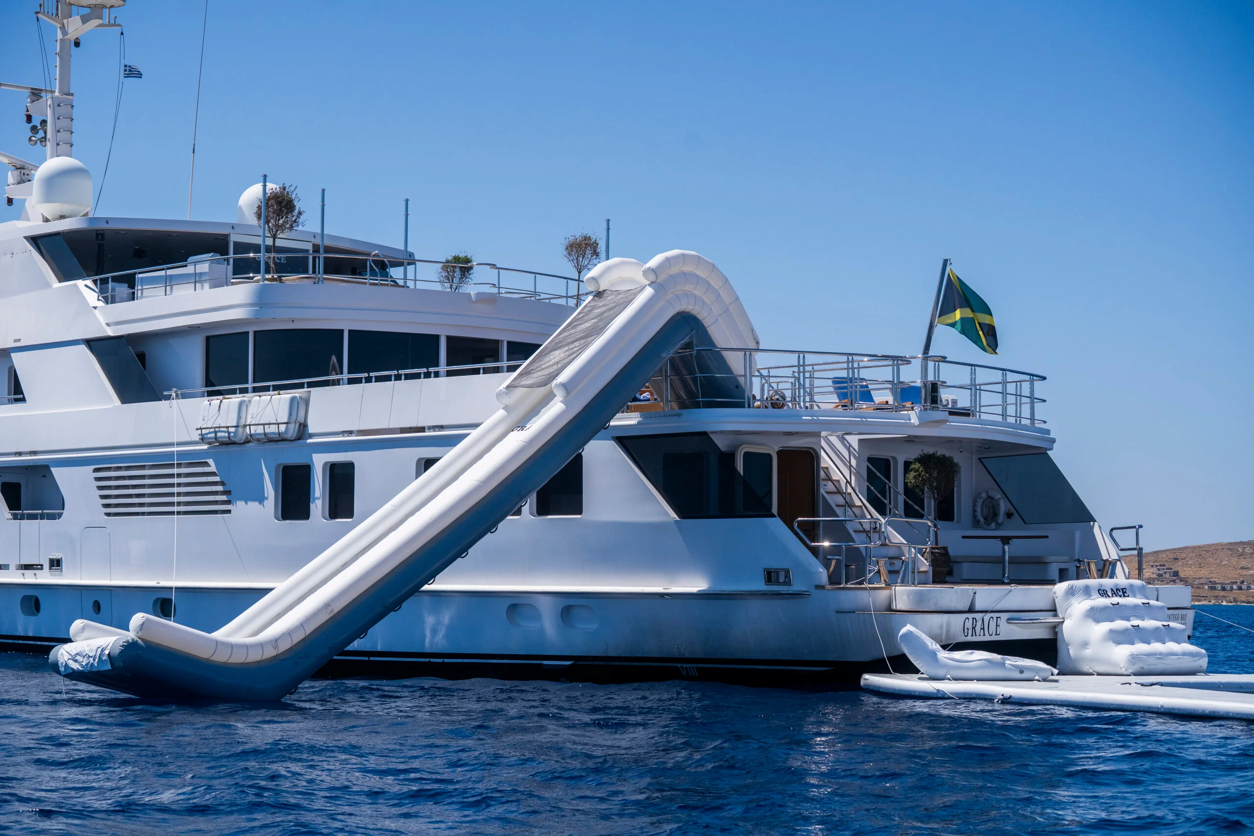 Grace Yacht showcasing its onboard slide for luxury sea enjoyment